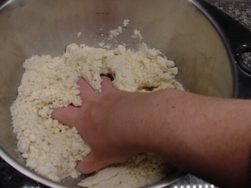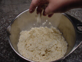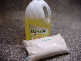 Because Jelly Bean still wants to experience everything with her tongue, I made a taste-safe recipe using 8 parts flour and 1 part vegetable oil. You can stir these ingredients together, use a masher, or use your hands, which I obviously chose the latter.